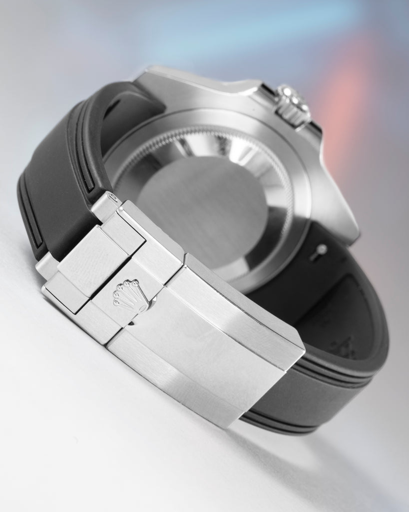 42mm 18K white gold case, screw-down back, screw-down crown with triplock triple waterproofness system, bidirectional rotatable 60-minute graduated bezel with matt black cerachrom insert in ceramic, polished raised numerals and graduations bezel, scratch-resistant sapphire crystal with cyclops lens over the date, falcon’s eye dial, Rolex calibre 3235 perpetual self-winding movement with centre hour, minute and seconds hands, instantaneous date